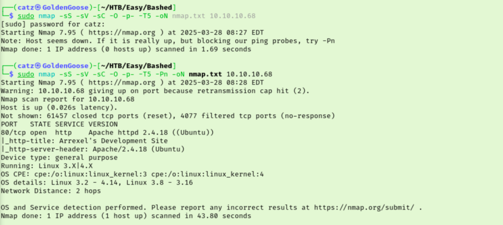 Another Friday and another room to tackle. Today is going to be Bashed by Hack the Box. As usual, let’s get started with an nmap scan.
