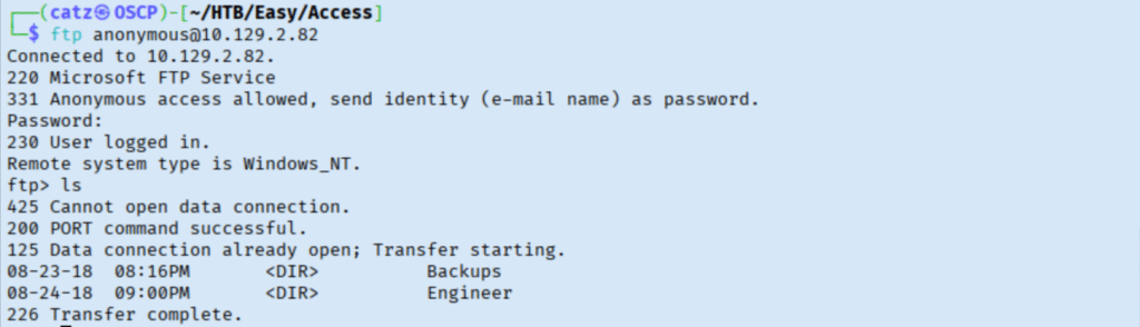 We’ve got some good results here. Anonymous FTP is allowed, they are using telnet for some reason, and they are hosting a website. I decided to start by exploring FTP.