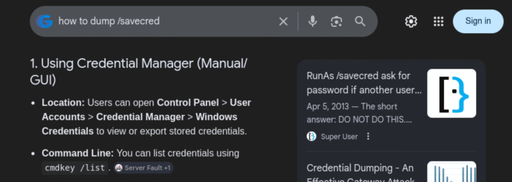 I messed around a little trying to use the saved credential to run cmd, but this all failed. Let’s see if we can dump the password instead.
