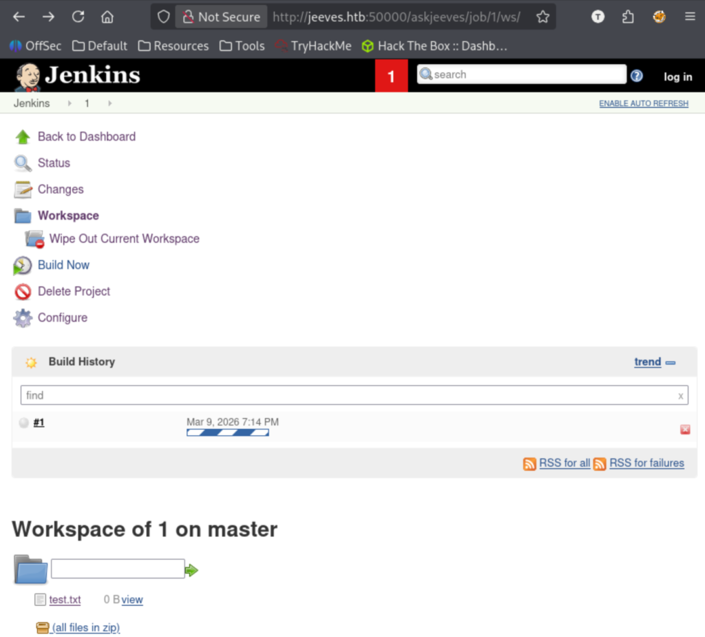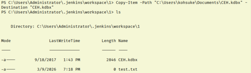 This looks like a KeePass file, which I have cracked in the past using john. At this point I spent a while just trying to figure out how to get the file to my machine. I struck out a bit here until I saw in the Jenkins console that we can interact with files in its workspace.