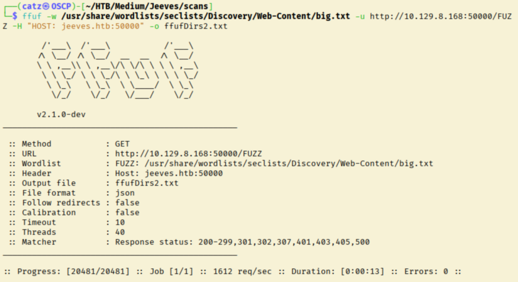 With nothing else to check, I ran more directory fuzzing with a bigger wordlist.
