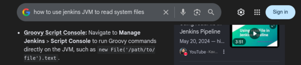 I tried executing ‘cat /etc/passwd’ but it threw errors. Instead, I searched how to read files using Jenkins.