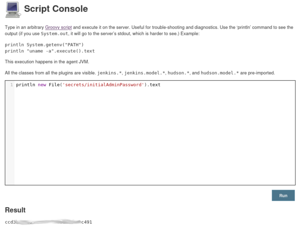 I played around with this for a while unsuccessfully. I looked up apache groovy and how to run systems commands, before trying a reverse shell that failed. I looked up default credentials for Jenkins, but it gets created and saved to a file during setup.